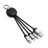 3-in-1 USB phone charging cable with a Light-up logo. compatible with iOS, micro USB, and Type C devices, ensuring you can charge all your devices with just one cable.