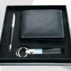 Gift set for men with genuine leather wallet, keychain and leather look pen