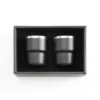 Stylish 80ml espresso cups in a Double-wall stainless steel (304 inner, 201 outer) with powder coating and silver-lined lid. Packed in a premium black kraft gift box with EVA and velvet lining.