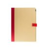 A4 folder with a button closure made from Eco-friendly material. Consists of a notepad with 70 pages, matching coloured pen and a pocket to keep documents and business cards.