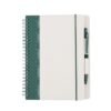 A5 size hard cover milk carton paper spiral notebook with ruler and 70 sheets – 80 gsm milk paper inner pages with lined print. Has elastic band and pen with pen holder.
