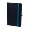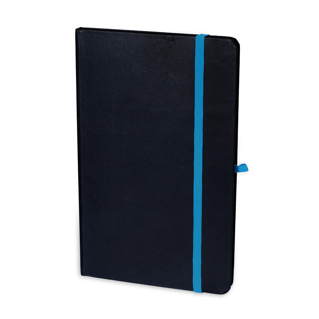 A5 PVC notebook with matching coloured 3mm elastic closure, 192 ruled pages, 70gsm. Every notebook is thread bound and comes with rounded corners, a bookmark, a penloop, an elastic closure and an expandable inner pocket. Packed in a gift box.