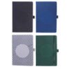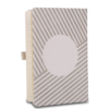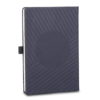 A5 notebook with 5W Wireless Charger in debossed pattern design. Has 88 sheets of cream lined paper and 8 sheets of blank paper. Charging port in upper side of notebook. Comes with Pen loop and elastic closure.