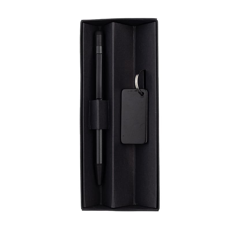 Gift Set of RCS-certified Recycled Aluminium Ballpoint Pen and Keychain. Packing in a paper gift box