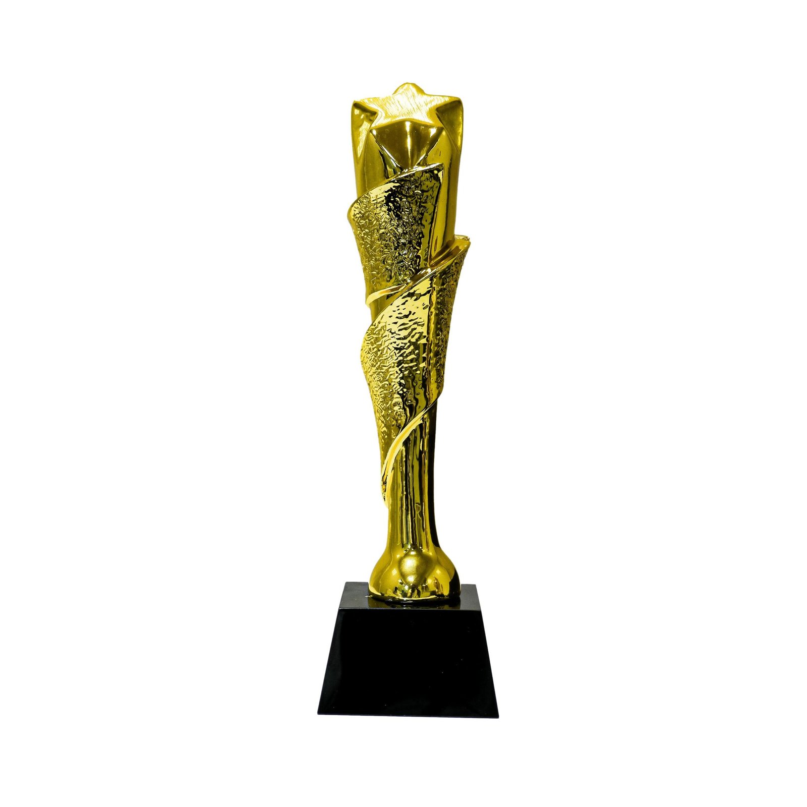 Celebrate achievements in style with this elegant golden trophy. Featuring a radiant gold design and a sturdy black base, this award is ideal for recognizing excellence in any field—be it sports, academics, or corporate milestones. Its modern and eye-catching design ensures it stands out as a symbol of accomplishment and pride. Perfect for award ceremonies, competitions, and events.