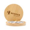 A round and eco-friendly Bamboo Travel Kit, featuring essential device accessories.