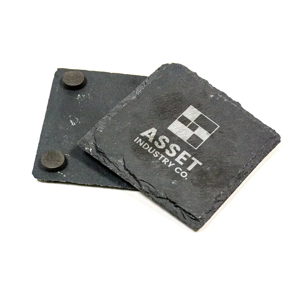 Elevate your tabletops with this elegant set of 2 black slate coasters. With a natural, rustic finish and sturdy construction, these coasters protect surfaces in style.