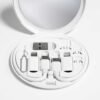 Stay connected with this all-in-one Charging Cable Set with Mirror. Available in black and white, it features a multi-charging adapter for USB-C, USB, and Lightning devices, a phone holder, and SIM card storage slots. Compact and travel-friendly, it’s the perfect digital travel companion.