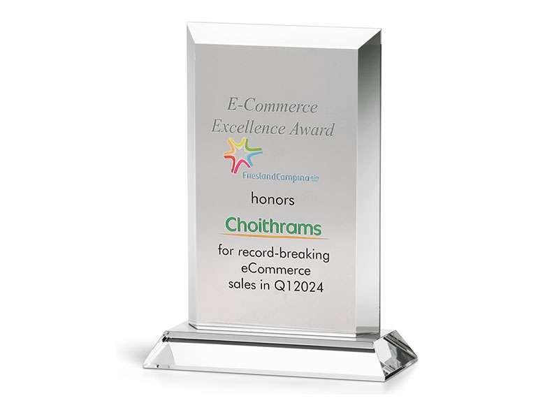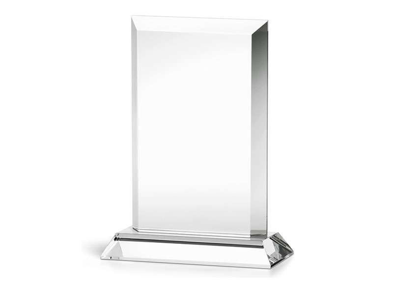 Crafted from premium crystal glass in a sleek rectangular design, it epitomizes elegance and sophistication. Customize it with engraved logos for corporate events, school awards, or employee recognition.