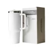 Stay hydrated all day with this 1200ml Double-Walled Tumbler! Featuring a sturdy handle, convenient flip straw, and superior insulation to keep drinks hot or cold. Available in Black and White