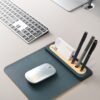 Foldable Mousepad in a soft recycled PU material with bamboo organizer phone stand and pen holders.