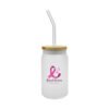 Glass Bottle with Straw and Breast Cancer Awareness Logo