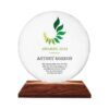 glass mementos, elegantly designed with a wood base and round glass top. Customize with engraved logos for corporate events, school awards, or employee recognition. Elevate your awards and recognition ceremonies with glass mementos.
