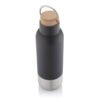 made from 83% RCS-certified recycled stainless steel, 2% cork and remaining 15% from iron alloy and PP materials. Includes a leak-proof cork lid with carry handle. Uses durable SS-304 grade stainless steel inside and outside for long term corrosion resistance. Packed in a gift box. Content: 650ml