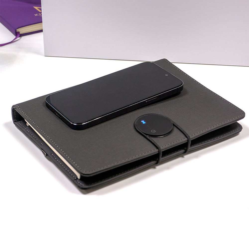 Featuring an integrated 8,000mAh wireless power bank, a sleek light-up logo, and dedicated slots for your essentials.