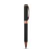 Black spray paint barrel with Rose gold accent Ball Point pen in brass and stainless steel material. Mirror Effect when engraved.