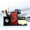 MULTI -PURPOSE CHARGING ORGANIZER Input : 9V-2A, 5V-2A, USB Output: 5V-2A (Max) Wireless Output: 15W Dimension : 255x97x94mm Printing Option : Engraving, Screen Printing