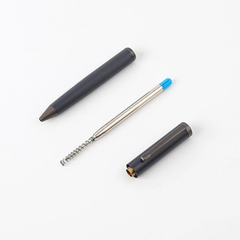 Metal pen made of stainless steel and copper with blue Premec ink.