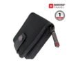It has a luxury micro leather water resistant fabric. Slip in currencies or coins in one of the pockets to fully replace your wallet as well. Includes 1 year brand warranty. Swiss Design by SKROSS.