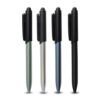 Ball pen with several functions such as screen cleaner and with active stylus. Comes in vivid colors twist action pen. Blue ink.