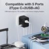 2 Type-C Port | 2 USB Port | Newly Upgraded 9-hole Socket | Mini Size Travel Adapter with 17W Charger Fuse Rating : 10A Max, Power : 2500W Max USB-C.